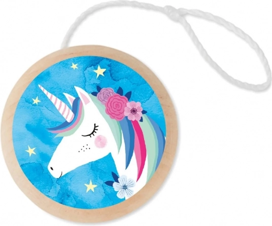 Klasično drveno jojo s motivom jednoroga je šareno oslikano i zabavno. Odlično služi za razvoj spretnosti i koordinacije kod djece.