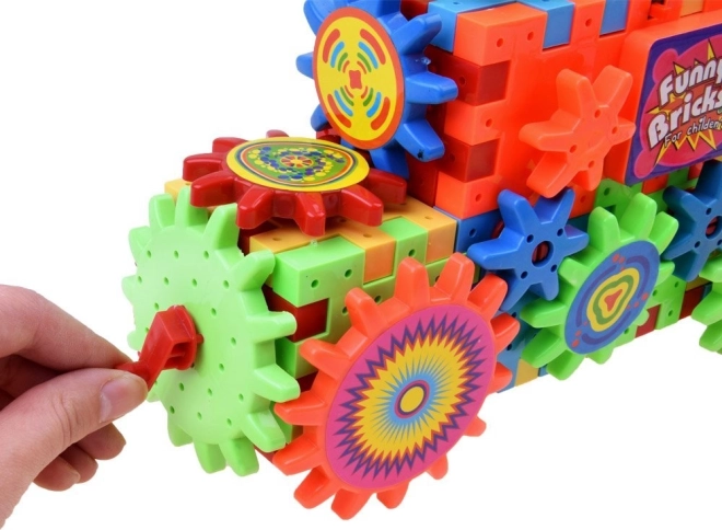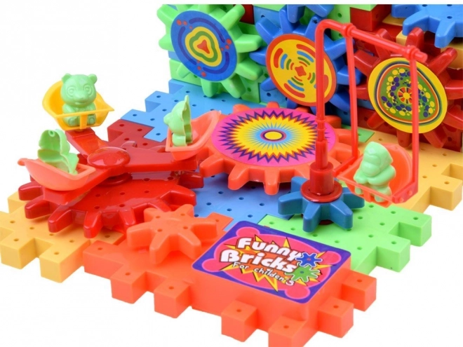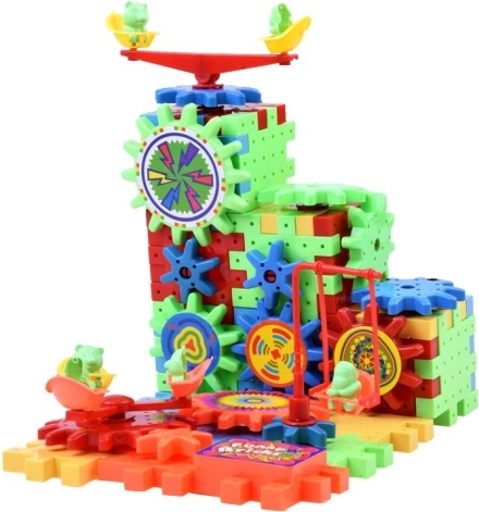 Set sadrži zupčanik pokretan AA baterijom, koji djeca mogu koristiti za oživljavanje građevina.