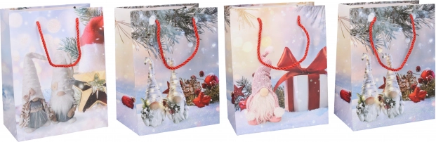 Olakšajte si pakiranje poklona s ovom elegantnom božićnom vrećicom. Dimenzije 26 × 32 × 10 cm idealne su za srednje velike poklone i sezonska iznenađenja. Zahvaljujući 4 različitim motivima lako ćete uskladiti izgled vrećice sa sadržajem i stilom osobe kojoj poklanjate.