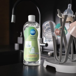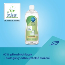 Nježno, ali vrlo učinkovito sredstvo za svakodnevno pranje dječjih bočica i duda. Sastav od 97 % prirodnih sastojaka učinkovito uklanja ostatke mlijeka, kašica i sokova, bez mirisa i bojila, s neutralnim pH i dermatološki testiranom formulom. Biorazgradivo i certificirano EU Ecolabel za nježnost prema koži i prirodi.