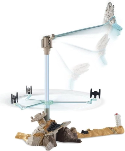 Otkrijte spoj dvaju ikoničnih brendova – Hot Wheels i Star Wars – koji je donio jedinstveni igraći set. Ovaj set oduševit će fanove svemirskih avantura iz svemira Star Wars kao i ljubitelje dinamične igre s vozilima Hot Wheels.