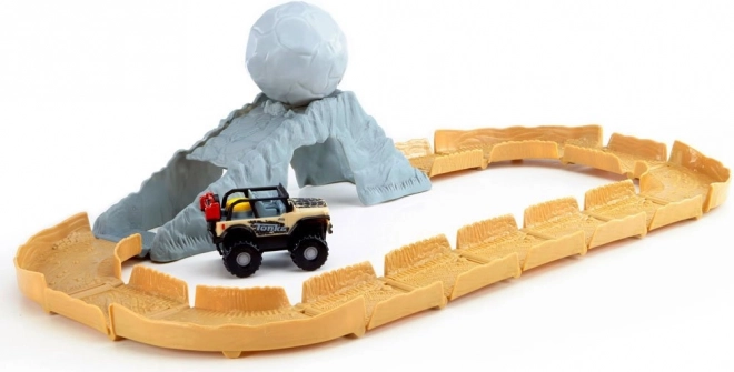 U pakiranju je sve za trenutačan start – staza za slaganje, terensko vozilo, rampa i kamen. Set je kompatibilan s drugim stazama serije, pa svoj svijet igre možete stalno proširivati. Odlična izrada i atraktivno pakiranje čine ga savršenim poklonom.