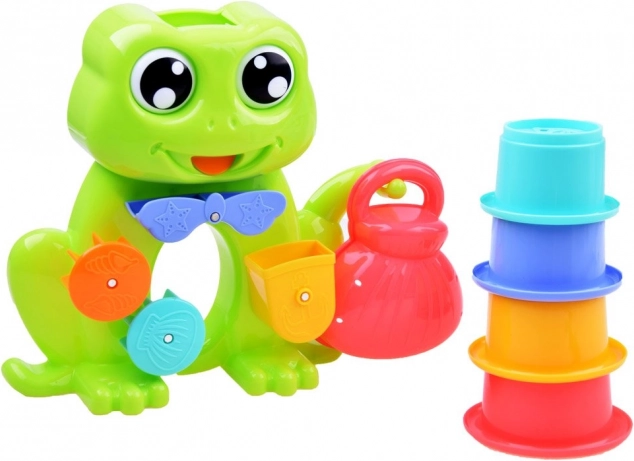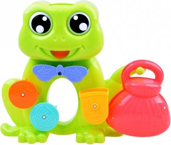 Vesela žaba s velikim očima i gumbićima privlači pažnju djece i potiče ih na samostalno otkrivanje vodenih efekata.