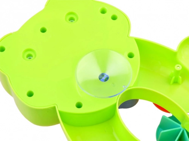 Ova razigrana žabica za kadu pretvara svako kupanje u zabavnu igru s vodom. Nakon ulijevanja vode u gornji dio pokreće se kaskadni mehanizam, zahvaljujući kojem se bubnjevi zavrte, a voda teče odozgo prema dolje. Djeca tako uživaju u interaktivnom prizoru i prirodno vježbaju koordinacijske sposobnosti.