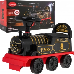 Uđite u svijet fantazijskog putovanja s ovom interaktivnom retro lokomotivom za malu djecu. Izrađena od visokokvalitetne, izdržljive i netoksične plastike je idealna za sigurnu igru kod kuće i na otvorenom. Lokomotiva je opremljena s šest kotačića, od kojih su dva prednja okretna za lakše upravljanje.