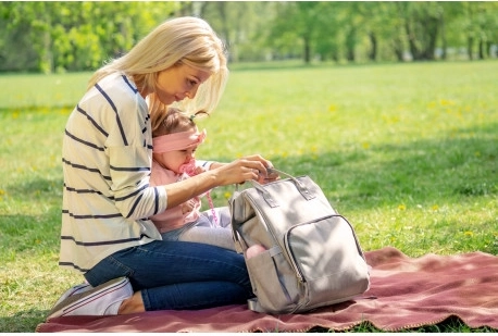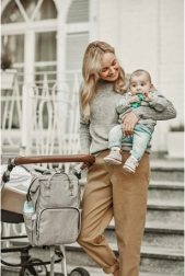 Stilski i vrlo prostran ruksak za presvlačenje Canpol babies Lady Mum za aktivne roditelje nudi odličnu organizaciju stvari na putu. Ima mnogo pretinaca, uključujući termo džep za bočicu, bočni džep za maramice i skriveni džep za dokumente. U kompletu je periva podloga za presvlačenje i vodootporni džep. Ruksak se može pričvrstiti na dječja kolica, a tu je i vrpca s kopčom za ključeve.