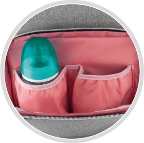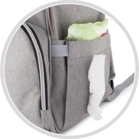 - Udobnost na putu: termo džep za bočicu/šalicu, vrpca s kopčom za ključeve, mogućnost pričvršćivanja na kolica.