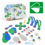 Dijelovi od izdržljivog, reciklabilnog sintetičkog papira s vrlo snažnim magnetima su vodootporni, lagani i jednostavni za čišćenje. Priložene vakuumske čašice omogućuju gradnju izravno na staklu, u automobilu ili na bilo kojoj glatkoj površini. Kompaktno pakiranje idealno je za putovanja i odlično za STEAM aktivnosti kod kuće i u školi.