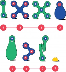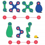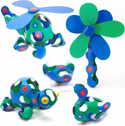 Magneti s mogućnošću 360° rotacije i fiksacijom u 24 položaja drže kreacije čvrsto na okupu – od jednostavnih modela do složenijih oblika.