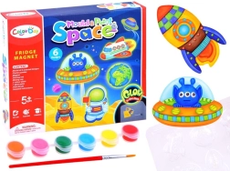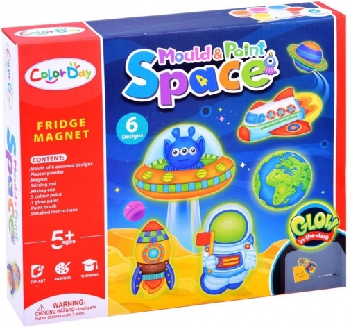 Zahvaljujući priloženim kalupima i bojama djeca će izraditi originalne magnete s motivima raketa, planeta i astronauta. Izrada je jednostavna i zabavna.