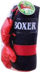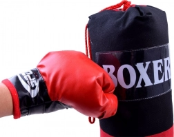 Kompletan boksački set za kućni trening i zabavu. Sadrži 2 boksačke rukavice i viseću boksačku vreću. Rukavice od sintetičke kože sa čičak zatvaranjem osiguravaju udobno i sigurno pričvršćivanje. Vreća je čvrsto prošivena, ovješena na metalnim očicama s uzicama. Idealno za razvoj koordinacije, brzine i okretnosti.