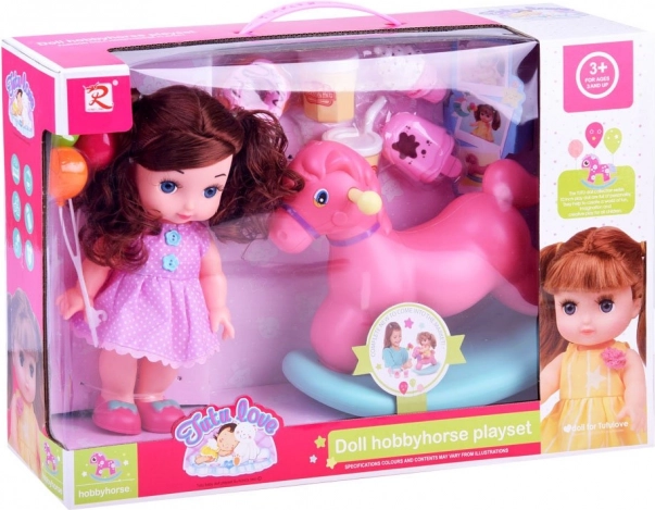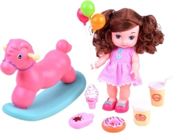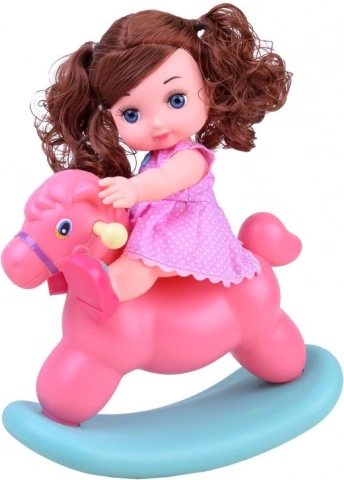 Doživite avanture s ovom preslatkom lutkom koja je savršen pratitelj za razigrane trenutke. Duga kovrčava kosa i živ izraz daju lutki dozu realizma, dok mekana, šarena odjeća obećava modnu zabavu. Ružičasti konjić za ljuljanje pruža ne samo potporu za ravnotežu, već je i sjajan dodatak djevojačkoj sobi.