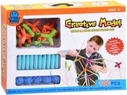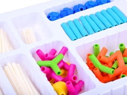 Zahvaljujući 106 dijelova djeca mogu graditi neograničen broj konstrukcija koje potiču njihovu kreativnost i prostornu maštu.