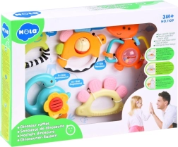 Razveselite svoje najmlađe s ovim simpatičnim setom 5 šarenih zvečka i grickalica u obliku dinosaura. Lagane su, jednostavne za držanje i zabavne za male ruke.