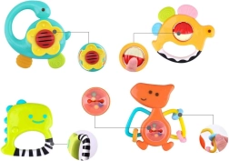 Otkrijte set zvečkica i grickalica, koji je posebno dizajniran za najmlađe koji tek počinju otkrivati svijet. Ovaj set sadrži pet zvečkica u obliku dinosaura, svaka od prozirne plastike i sigurna za djecu.