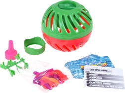 Uz kuglu dobivate adapter, nastavak za punjenje, kartice s pitanjima, oko 30 balona i 6 višekratnih kvačica za brzu pripremu igre.