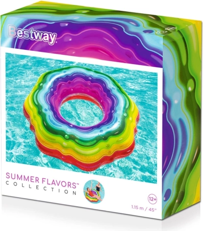 Uživajte u beskrajnim vodenim radostima s velikim napuhanim prstenom tvrtke Bestway. Ovaj prsten promjera 115 cm izrađen je od otpornog PVC-a, koji je otporan na UV zračenje i morsku vodu. Oblik prstena osigurava udobno i bezbrižno uživanje pored vode.
