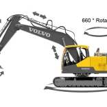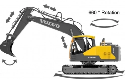 Zahvaljujući potpuno funkcionalnom daljinskom upravljanju, možete bager glatko upravljati naprijed i nazad, kao i okretati kabinu do 660°.