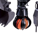Bager je opremljen s tri zamjenjiva pribora: pneumatskim čekićem, lopatom i gumenom loptom za hvatanje. Dodatno, dizajn s mekim gumenim trakama osigurava glatke pokrete po različitim površinama. S dužinom žlice od 46 cm omogućuje kopanje s visokom efikasnošću.