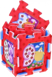 Dijelovi se povezuju kao slagalica i od njih se može napraviti ravna igraća površina, ali i 3D oblici (kocke ili kućice) koji povećavaju zabavu i razvoj prostorne predodžbe. Podloga se lako održava – dovoljno ju je obrisati vlažnom krpom. Protuklizna površina pridonosi većoj stabilnosti tijekom igre.