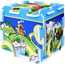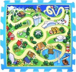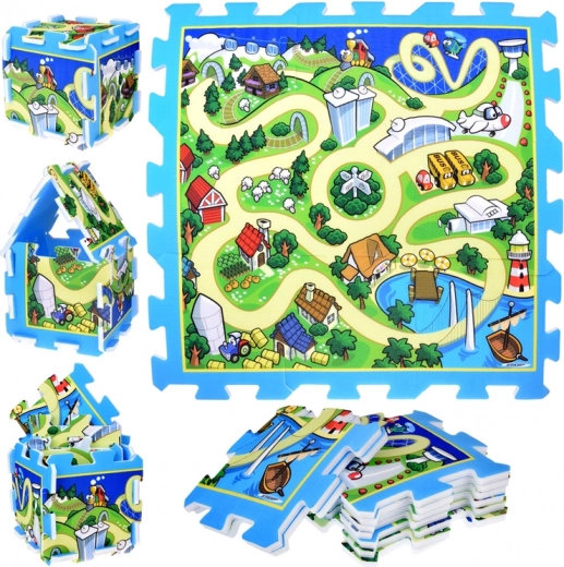 Ova pjenasta podloga/puzzle s motivom grada i cesta pretvara svaku sobu u zabavnu prometnu zonu. Dijelovi od mekane, ali izdržljive pjene stvaraju mekan i siguran površinski sloj za sjedenje, puzanje i prve korake. Djeca mogu voziti autiće po cestama, učiti boje i oblike te razvijati maštu.