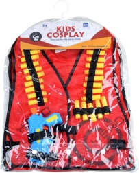 Ovaj cosplay set uključuje crveni taktički prsluk s petljama za metke, plavi dječji pištolj i set mekih pjenastih strelica. Prsluk je od izdržljivog tekstila s podesivim elementima kako bi dobro pristajao djeci približno od 3 do 8 godina. Cijeli set je lagan, udoban i idealan za dinamičnu igru i trening preciznosti.