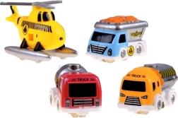 U kompletu su tri građevinska vozila – kiperi, miješalica betona i cisterna – te helikopter. Tu je i figurica građevinara za još realističniju igru.