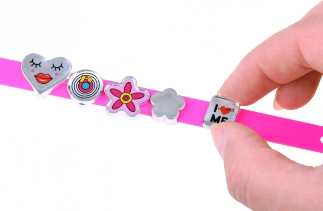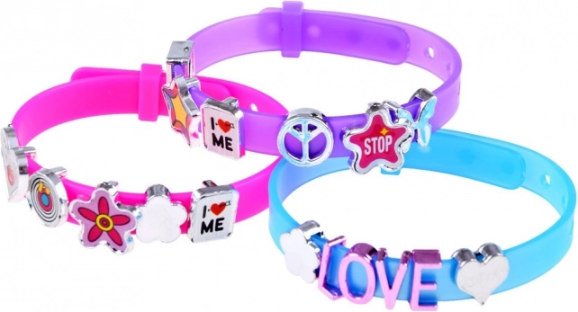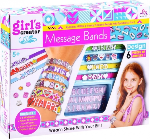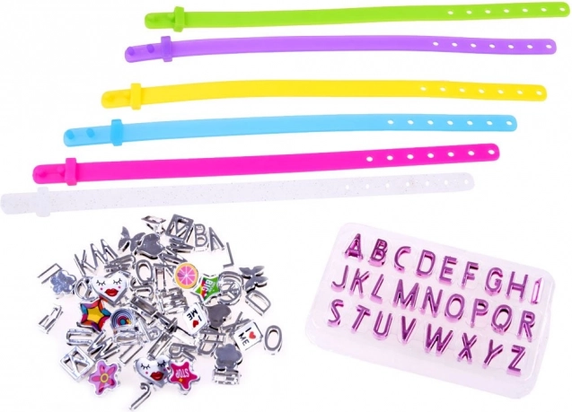 Kreativni set sadrži sve potrebno za stvaranje prekrasnih i kreativnih narukvica. 5 traka u raznim bojama s prilagodljivim zatvaranjem omogućuje prilagodbu za različite veličine zapešća. Plastična slova i ukrasi mogu se slobodno kombinirati za stvaranje imena, fraza i uzoraka – mogućnosti su beskonačne! Ova zabava istodobno razvija kreativnost, vještinu i maštu.