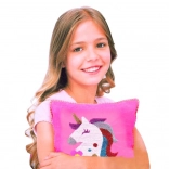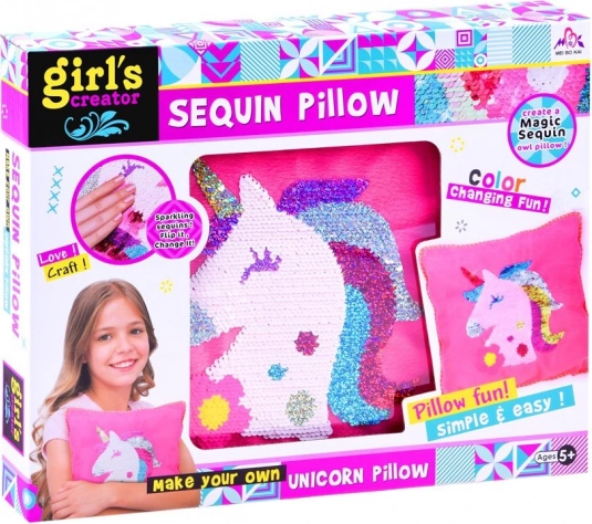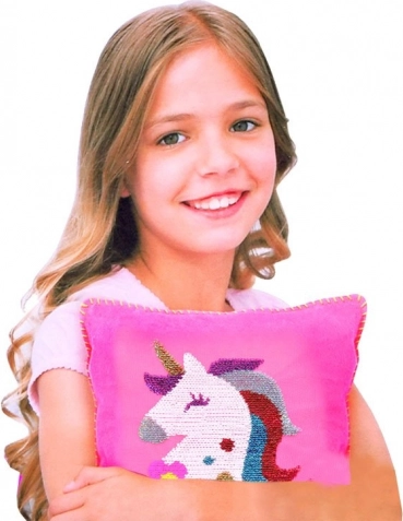 Kreativni set za izradu jastuka s jednorogom i šljokicama idealan je izbor za svako dijete koje želi samo izraditi lijepu dekoraciju za svoju sobu. Sadrži sve potrebno za izradu jastučića od mekog materijala s dvostranim šljokicama koje mijenjaju boju.