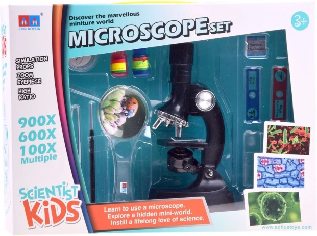 Otkrijte mikrosvijet s dječjim mikroskopskim setom koji nudi uvećanja 100×/600×/900×, bogatu opremu i jednostavno rukovanje. Idealan kao edukativno pomagalo za školu i dom – razvija znatiželju, znanstveno razmišljanje i finu motoriku. Napajanje osiguravaju 2× AA baterije (nisu uključene).