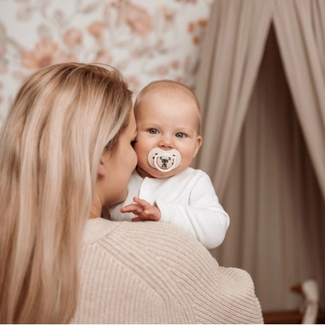 Povratak prirodi i jedinstven dizajn biljaka i životinja. To je nova kolekcija WILD SOUL od LOVI, koja se ponosi dinamičkim dudama sa simpatičnim motivima inspiriranim prirodom. Nježne trendi boje savršeno odgovaraju mamama koje traže najnovije trendove za svoju djecu. Gumica dude se dinamično prilagođava djetetovom sisanju i ne narušava njegov sisni refleks. Dude ne sadrže BPA. U pakiranju 2 kom. Dinamičku dudu LOVI razvili su u suradnji s neurologopedima kako bi se osigurao prirodan i zdrav razvoj nepca, zubi i desni djeteta. Silikonska simetrična dinamička duda LOVI je klinički testirana. Sve LOVI dude izrađene su od silikona koji je potpuno proziran, bez okusa i mirisa. Silikonske dude imaju dulji vijek trajanja i lakše se održavaju čistima. Jedinstvena simetrična dinamička gumica vrlo se dobro odzračuje i ne deformira djetetovo nepce. sprječava refleks grizenja dude omogućuje prirodno gutanje sline podupire zdrav razvoj govora i formiranje zagriza ne deformira djetetovo nepce vrlo se dobro odzračuje Dinamička gumica izrađena je od nehomogenih slojeva silikona, pa se produžuje i skraćuje ovisno o ritmu djetetova sisanja. Simetričan oblik podsjeća na majčinu bradavicu. Oblik gumice također omogućuje umetanje dude u djetetova usta na bilo koji način (nema određenu gornju i donju stranu). Profilirani oblik štitnika omogućuje djetetu slobodno disanje kroz nos. Izrađen je od sigurnog materijala koji ne sadrži BPA. Jedinstveni rub štitnika izrađen je od medicinskog materijala, ugodan je na dodir i sprječava otiske od dude. Otvori u štitniku omogućuju cirkulaciju zraka, smanjuju nakupljanje sline iza štitnika i tako sprječavaju iritaciju osjetljive dječje kože. Gumica od visokokvalitetnog materijala – visokokvalitetan i nježan silikon. Prsten – čvrsto je učvršćen u dudi, olakšava držanje i pružanje dude. Na njega možete pričvrstiti lančić ili vrpcu. Plastični poklopac – duda je iz higijenskih razloga opremljena plastičnim poklopcem. LOVI dude dobile su priznanja krajnjih potrošača. Dude se isporučuju u mnogim modernim bojama i dizajnima. Set sadrži: 2 kom dinamičkih duda LOVI 2 kom plastičnih poklopaca za dudu 1 kom plastične kutijice Upute za uporabu: Prije prve uporabe dudu iz higijenskih razloga sterilizirajte u kipućoj vodi oko 5 minuta. Nakon hlađenja istisnite preostalu vodu iz dude. Prije svake uporabe dudu operite u toploj vodi. Ne koristite kemijske dezinficijense! Visoke koncentracije takvih sredstava mogu oštetiti plastične dijelove dude. Nikada nemojte umakati dudu u slatke tvari ili lijekove – time izlažete dijete opasnosti od oštećenja zubne cakline. Dudu koristite najviše 1–2 mjeseca, zatim je iz higijenskih i sigurnosnih razloga zamijenite novom. Ako djetetu duda uđe u usta, NE PANIČARITE – duda je konstruirana tako da je dijete ne može progutati, a vi je u takvim slučajevima možete sigurno izvaditi. Dudu vadite što je moguće nježnije. Čuvajte dudu u čistoj, suhoj i zatvorenoj kutijici. Ne preporučujemo upotrebu dude za dijete starije od 3 godine. Upozorenje! Važno za zdravlje i sigurnost vašeg djeteta! Prije svake uporabe provjerite ispravnost dude. Posvetite dudi pojačanu pažnju nakon što djetetu izrastu prvi zubi. Temeljito testirajte kvalitetu gumice rastezanjem u svim smjerovima. Pri prvim znakovima oštećenja dudu odmah bacite i više je nemojte koristiti. Koristite samo one držače za dude koji odgovaraju zahtjevima norme EN12586. Nikada ne pričvršćujte dudu na različite vrpce, vezice ili trakice odjeće. Dijete se može ugušiti. Ne ostavljajte dudu na izravnom sunčevom svjetlu, u blizini izvora topline ili u dezinficijensima dulje nego što je preporučeno – možete uzrokovati slabljenje gumice. Skinuti poklopac čuvajte izvan dohvata djeteta – spriječit ćete moguće gušenje. Silikonska duda odgovara zahtjevima: Direktiva Europskog parlamenta i Vijeća 2001/95/EC o općoj sigurnosti proizvoda EN 1400 – 1 Proizvodi za njegu djeteta – Dude za dojenčad i malu djecu – Dio 1: Opći sigurnosni zahtjevi i informacije o proizvodu EN 1400 – 2 Proizvodi za njegu djeteta – Dude za dojenčad i malu djecu – Dio 2: Mehanički zahtjevi i ispitivanja EN 1400 – 3 Proizvodi za njegu djeteta – Dude za dojenčad i malu djecu – Dio 3: Kemijski zahtjevi i ispitivanja