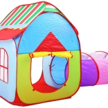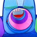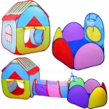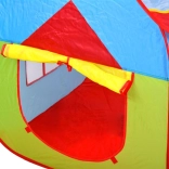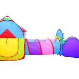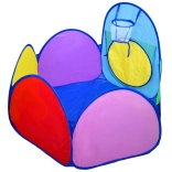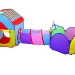 Šareni dječji set šatora 3u1 spaja kućicu, tunel i ograđeni prostor s košem za loptice za beskrajnu zabavu kod kuće i u vrtu. Lagana konstrukcija, brzo sastavljanje i rasklapanje, prozračna prozorčića i sklopivi dizajn čine ovaj set idealnim mjestom za igru, provlačenje i gađanje lopticama.