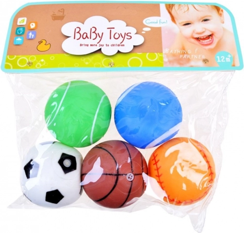 Ovaj raznoliki set sadrži pet šarenih gumenih loptica nadahnutih omiljenim sportovima: nogomet, košarka, tenis, bejzbol i američki nogomet. Zahvaljujući ugrađenoj zviždaljci, pri stisku se čuje zabavan zvuk koji potiče dječju znatiželju i razvija finu motoriku.