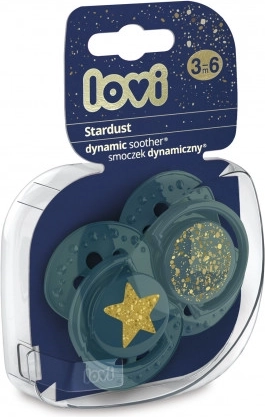Stardust je ovdje! Jedinstvena, dizajnerski upečatljiva, premium kolekcija od LOVI. Jedinstveni dizajn kolekcije Stardust – ukras u obliku zlatnog sjaja koji podsjeća na zvjezdano nebo. Kolekcija se ponosi dinamičnom dudom LOVI veličine 3–6 mj, koja je razvijena u suradnji s neurologopedima s ciljem osiguravanja prirodnog i zdravog razvoja nepca, zubi i desni djeteta. Guma dude se dinamično prilagođava sisanju djeteta, ne narušava refleks sisanja. Ne sadrži BPA. U pakiranju 2 kom. SVI SMO STVORENI OD ZVIJEZDA Dinamična duda LOVI nastala je u suradnji s neurologopedima s ciljem osiguravanja prirodnog i zdravog razvoja nepca, zubi i desni djeteta. Silikonska simetrična dinamična duda LOVI klinički je testirana. Sve dudice LOVI izrađene su od silikona koji je bez okusa i mirisa. Silikonske dudice imaju dulji vijek trajanja i lakše se održavaju čistima. Jedinstvena simetrična dinamična guma vrlo se dobro odzračuje i ne deformira djetetovo nepce. sprječava refleks grizenja dude omogućuje prirodno gutanje sline podržava zdrav razvoj govora i formiranje zagriza ne deformira djetetovo nepce vrlo se dobro odzračuje Dinamična guma izrađena je od nehomogenih slojeva silikona, pa se produljuje i skuplja ovisno o ritmu sisanja djeteta. Simetričan oblik podsjeća na majčinu bradavicu. Oblik gume također omogućuje umetanje dude u djetetova usta na bilo koji način (nema određenu gornju i donju stranu). Profilirani izrezani oblik štitnika omogućuje djetetu slobodno disanje na nos. Izrađen je od sigurnog materijala koji ne sadrži BPA. Jedinstveni rub štitnika izrađen je od medicinskog materijala, ugodan je na dodir i sprječava otiske od dude. Otvori u štitniku omogućuju cirkulaciju zraka, uklanjaju nakupljanje sline iza štitnika i time sprječavaju iritaciju osjetljive dječje kože. Prsten na dudi čvrsto stoji, olakšava držanje i pružanje dude. Na njega možete pričvrstiti lančić ili vrpcu. Duda je iz higijenskih razloga opremljena plastičnim poklopcem. Plastična kutijica služi kao etui za higijensko čuvanje duda. Dudice LOVI dobile su priznanja krajnjih potrošača: Dudice se isporučuju u mnogim modernim bojama i dizajnima. Set sadrži: 2 kom dinamičnih duda LOVI 2 kom plastičnih poklopaca za dudu 1 kom plastične kutijice Upute za uporabu: Prije prve uporabe dudu iz higijenskih razloga sterilizirajte u kipućoj vodi oko 5 minuta. Nakon hlađenja istisnite preostalu vodu iz dude. Prije svake uporabe dudu operite u toploj vodi. Ne koristite kemijska dezinfekcijska sredstva! Visoka koncentracija takvih sredstava može oštetiti plastične dijelove dude. Nikada ne umačite dudu u slatke tvari niti u lijekove – izlažete dijete riziku nastanka oštećenja zubne cakline. Dudu koristite najviše 1–2 mjeseca, zatim je iz higijenskih i sigurnosnih razloga zamijenite novom. Ako djetetu duda sklizne u usta, NE PANIČARITE – duda je konstruirana tako da je dijete ne može progutati i u takvim slučajevima je možete sigurno izvaditi. Dudu vadite što je moguće pažljivije. Dudu čuvajte u čistom, suhom i zatvorenom etuiju. Ne preporučujemo uporabu dude za dijete starije od 3 godine. Upozorenje! Važno za zdravlje i sigurnost vašeg djeteta! Prije svake predaje djetetu provjerite ispravnost dude. Posvetite dudi posebnu pozornost nakon što djetetu izrastu prvi zubići. Provjerite kvalitetu gume temeljitim istezanjem u svim smjerovima. Pri prvim znakovima oštećenja dudu odmah bacite i dalje nemojte koristiti. Koristite samo one držače za dudu koji odgovaraju zahtjevima norme EN12586. Nikada ne pričvršćujte dudu na razne vrpce, vezice ili trakice odjeće. Dijete se može ugušiti. Ne ostavljajte dudu na izravnoj sunčevoj svjetlosti, u blizini izvora topline ili u dezinfekcijskim sredstvima dulje nego što je preporučeno – možete uzrokovati slabljenje gumene djelatne površine dude. Uklonjeni poklopac držite izvan dohvata djeteta – spriječit ćete moguće gušenje. Silikonska duda odgovara zahtjevima: Direktiva Europskog parlamenta i Vijeća 2001/95/EC o općoj sigurnosti proizvoda EN 1400 – 1 Proizvodi za njegu djece – Dude za dojenčad i malu djecu – Dio 1: Opći sigurnosni zahtjevi i informacije o proizvodu EN 1400 – 2 Proizvodi za njegu djece – Dude za dojenčad i malu djecu – Dio 2: Mehanički zahtjevi i ispitivanja EN 1400 – 3 Proizvodi za njegu djece – Dude za dojenčad i malu djecu – Dio 3: Kemijski zahtjevi i ispitivanja Dudice LOVI ne sadrže bisfenol A.