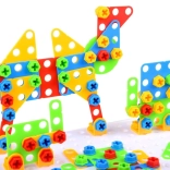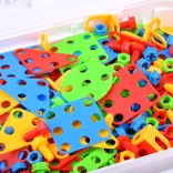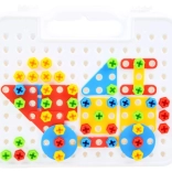 Ova kreativna građevna set-konstrukcija za male majstore nudi neograničene mogućnosti gradnje. Djeca mogu stvarati 2D slike i 3D modele uz pomoć perforirane ploče, vijaka i šarenih dijelova raznih oblika. Kofer s ručkom osigurava lako prenošenje i pregledno spremanje svih komponenti.
