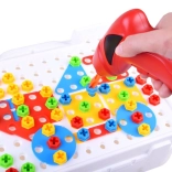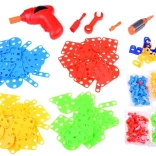 U setu je dječja električna bušilica na 2× AA baterije, odvijač i ključ, koji omogućuju pravo zavrtanje i odvrtanje konstrukcija. Tako djeca vježbaju finu motoriku, koordinaciju oko–ruka i strpljenje te istodobno razvijaju kreativnost i tehničko razmišljanje.