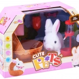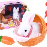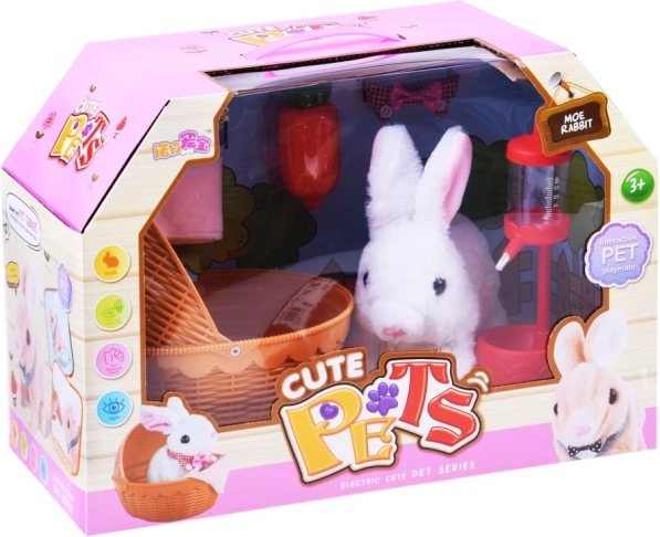 Slatki bijeli zeko s ružičastim uškama razveselit će svako dijete. Nakon umetanja baterija zeko se kreće naprijed, komično miče njuškicom i ispušta zečje zvukove. Dio seta su košarica s dekicom, mrkva i duda/bočica za hranjenje za realistčnu brigu o ljubimcu.