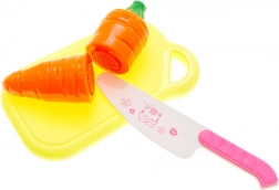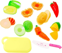 Zabavan set za male kuhare sadrži siguran plastični nož, dasku i raznobojan izbor povrća za „rezanje” pomoću čička. Potiče finu motoriku, koordinaciju oko–ruka i kreativnu igru kuhanja bez rizika.