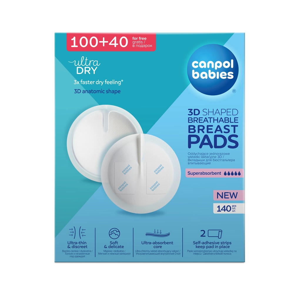 Prsne uloške CANPOL BABIES Ultra Dry 3D dizajnirane su za pouzdanu zaštitu pri curenju mlijeka. Meki upijajući sloj brzo upija tekućinu i zaključava vlagu unutra, dok nepropusni vanjski sloj štiti rublje. Zahvaljujući debljini od približno 1,3 mm vrlo su tanke i diskretne, a ipak učinkovite i udobne za svakodnevno nošenje.