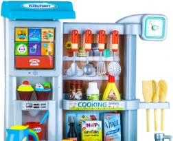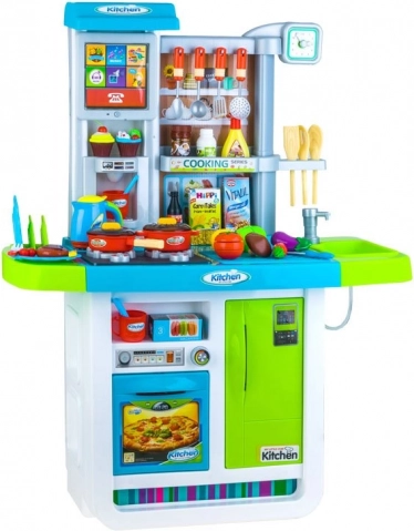 Ova interaktivna kuhinjica izvrstan je dar za male kuhare. Djeca će obožavati kuhanje na 2 plamenika sa svjetlima i zvukovima, pečenje u pećnici i spremanje namirnica u hladnjak. Funkcionalni sudoper s pipom i tekućom vodom te touch panel s melodijama i zvukovima osiguravaju sate zabave.