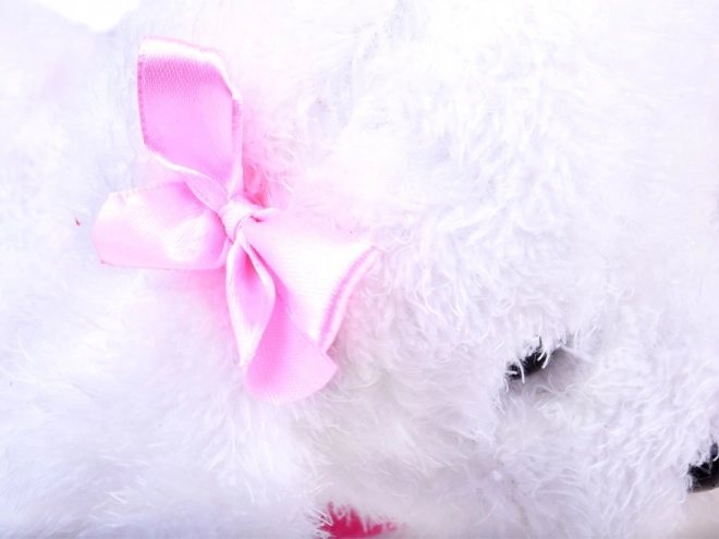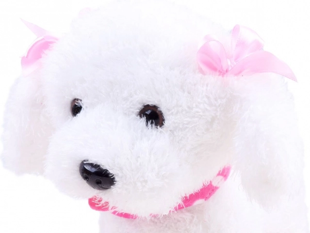Zahvaljujući mekom i baršunastom materijalu, psić je odličan za maženje. Šareni ovratnik i mašnice daju igrački sladak izgled koji će djeca brzo zavoljeti. Idealan za igru kod kuće na ravnim površinama.
