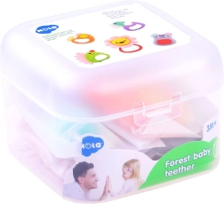 Šareni set grickalica u obliku životinja idealan za izbijanje zubića kod male djece. Grickalice su lagane, lako se hvataju i pomažu u razvoju motoričkih vještina djeteta.