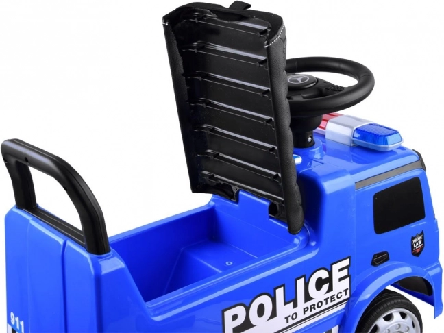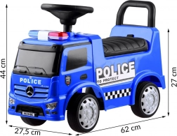 Šetalo Mercedes Policija je izvrsna opcija za malu djecu. Opremljeno je zvučnom trubom i svitljivim lampama, koje se mogu aktivirati pritiskom na gumb. Udobno sjedalo s naslonom osigurava sigurnu i udobnu vožnju, a zahvaljujući posebnoj blokadi vozilo se ne može prevrnuti unatrag.