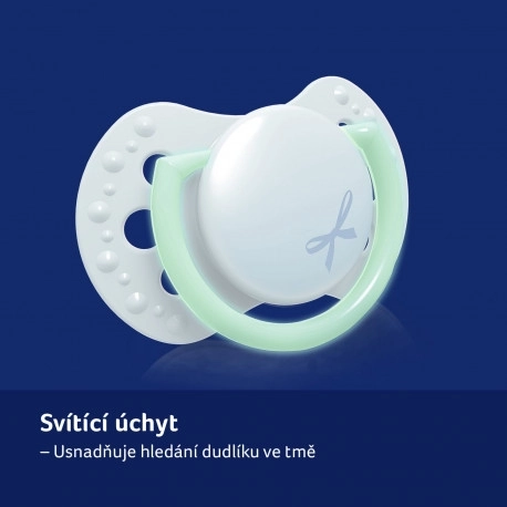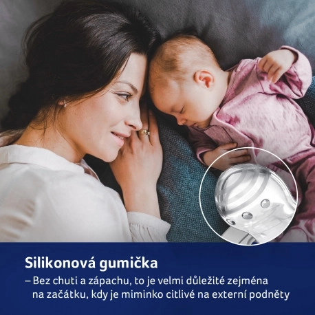 Izrađen od slojeva silikona za fleksibilnost prema ritmu sisanja djeteta. Simetričan oblik podsjeća na majčinu bradavicu i omogućuje lako stavljanje u usta.