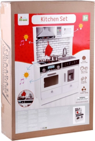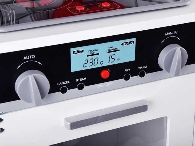 Kuhinjska igračka opremljena je svjetlosnim i zvučnim efektima, koji djeci pružaju realističan osjećaj kuhanja.