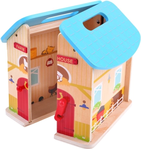 Drvena farma za djecu može biti početak velike avanture. Mašta i kreativnost djece nemaju granica. Nakon igre, kućica se može zatvoriti što olakšava spremanje, prenošenje i osigurava sigurnost figurica unutra. Ova igračka potiče kreativno provođenje vremena, razvija maštu i pomaže u razvoju mnogih drugih vještina.