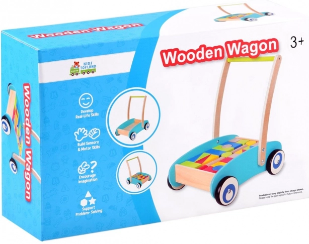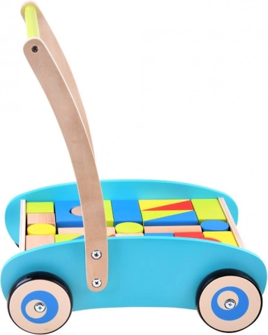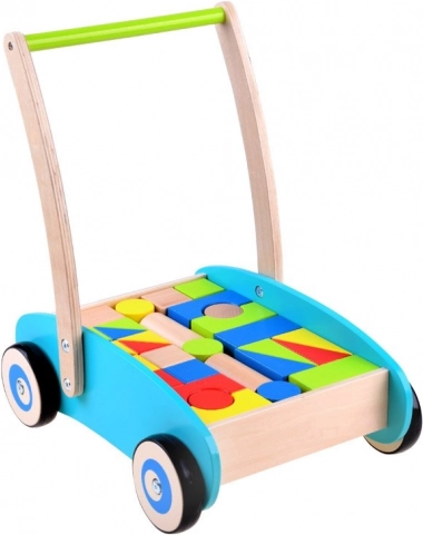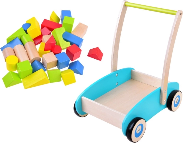 Hodalica ima gumene navlake na kotačima koje osiguravaju tihi i lagani pokret po podu. Drvene kocke, unatoč svojoj jednostavnosti, predstavljaju jednu od najboljih oblika zabave za djecu. Pomažu u razvoju njihove kreativnosti i logike.