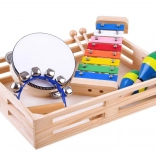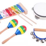Drveni glazbeni set idealan je izbor za male početnike glazbenike. Ističe se svojim šarenim bojama koje odmah privlače dječju pažnju i pomaže u razvoju sluha i ritma.