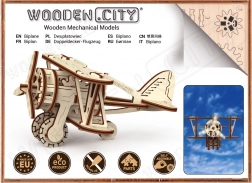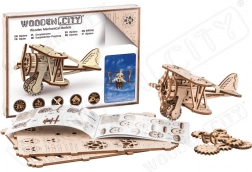 Drvena mehanička maketa u obliku dvokrilca nudi jedinstveni dizajn i iznenađujuće detalje. S modelarskom preciznošću prenijet ćete se u zračne avanture uz rame pionira zrakoplovstva kao Antoine de Saint-Exupéry. Ovaj model pogonjen je gumenim trakama s podesivim ubrzanjem koje pokreće propeler i omogućuje avionu ubrzavanje na ravnoj površini.