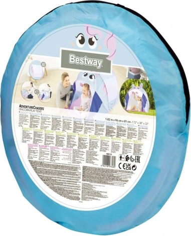 Preslatki dječji pop-up šator u obliku jednoroga brenda BESTWAY pretvara svaku sobu, vrt ili plažu u bajkovito kraljevstvo. Zahvaljujući brzom samorasklapanju, laganom materijalu i mrežastim prozorčićima za prozračivanje, idealan je za kreativnu igru i odmor. Podnica osigurava čisto i udobno okruženje, a dimenzije 182 × 96 × 81 cm nude dovoljno mjesta za igru i mali predah.